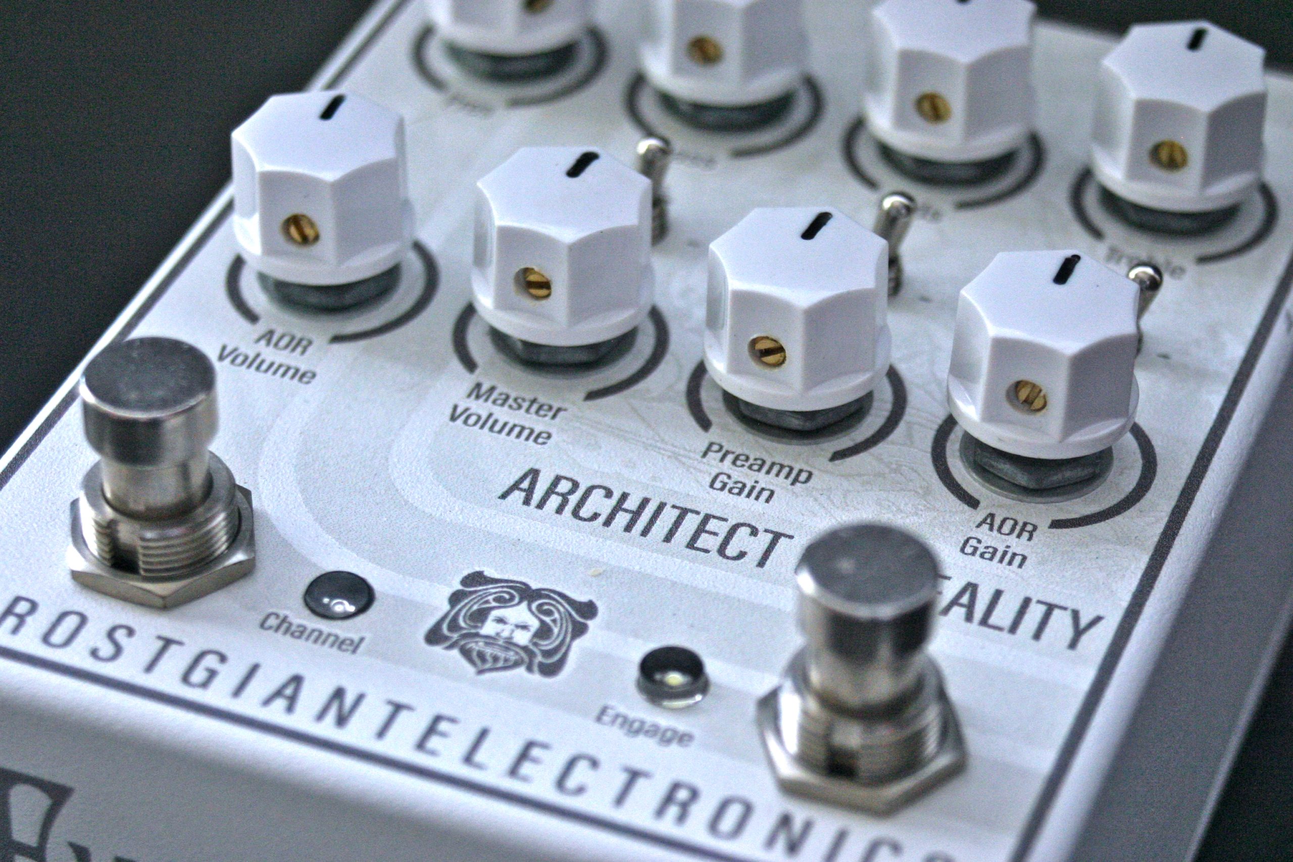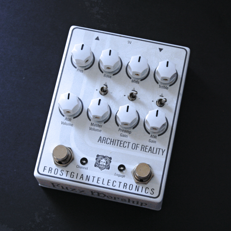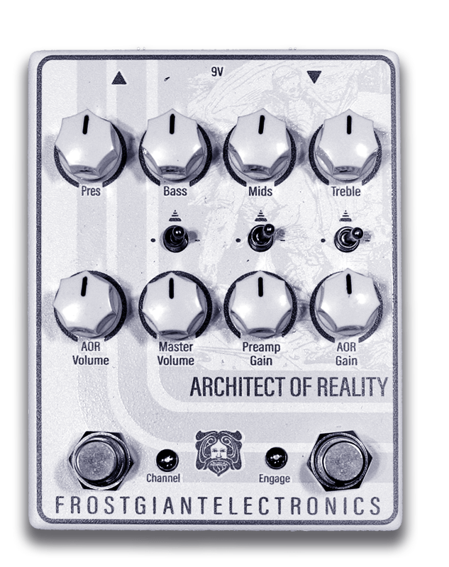The Architect of Reality is a dual channel preamp pedal with the ability to mix the low and high gain channel together in the AOR mode for more tone tweaking ability with both channels on independent footswitches. It's powered internally at 36v+ (9v boss style used) for more headroom and amp-like sensitivity.