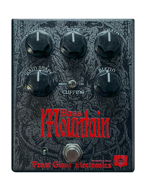 Controls on top are the standard Mountain, but included is also a Gain Shape knob to control the amount of saturation and a dedicated Blend knob to help preserve your original bass tone. Clipping switch on this is a Mosfet/Germanium (DE9) and LED diodes to get the perfect compressed or open tone depending on the application.